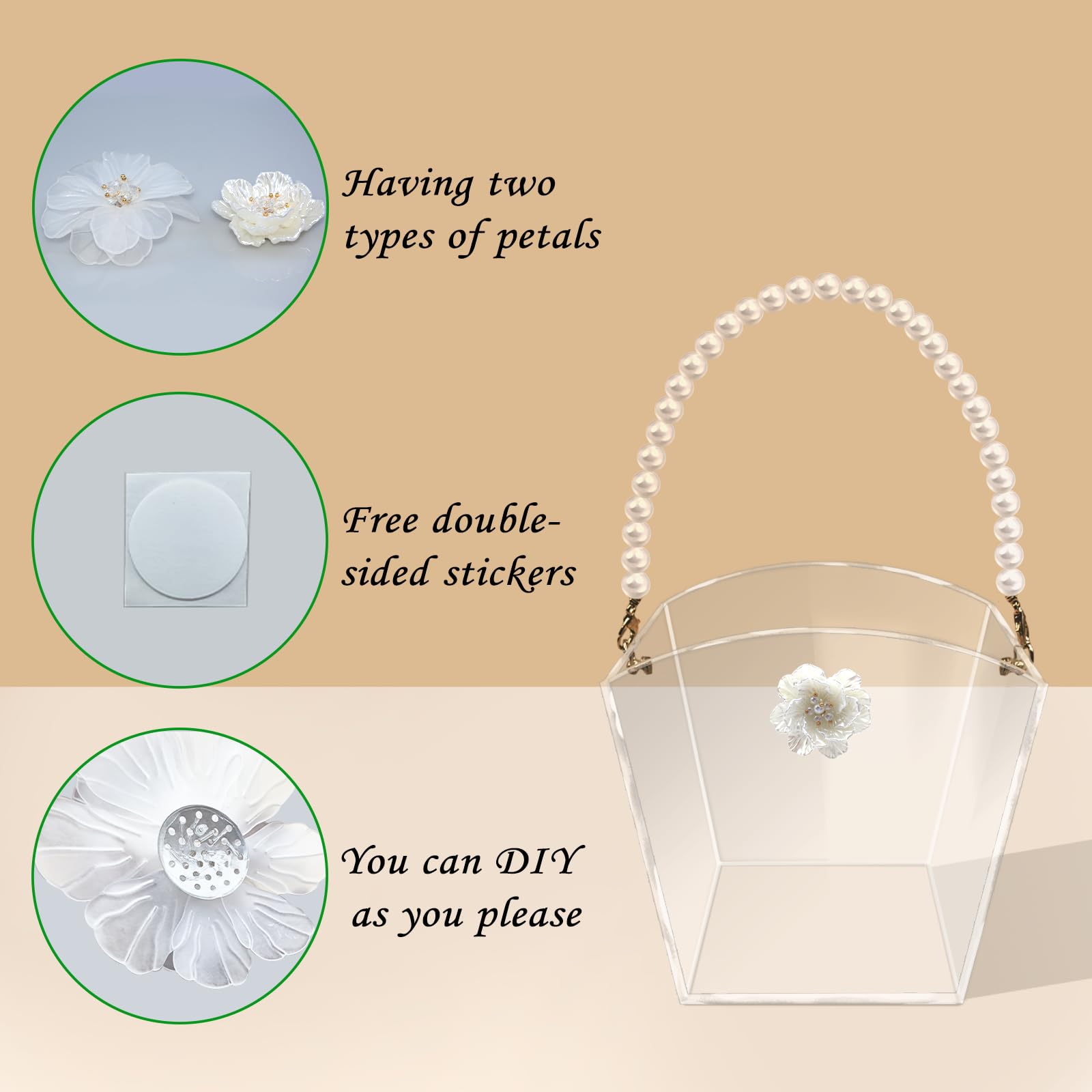 - DIY Flower Basket Decoration: This flower basket can be adorned with fresh flowers, dried flowers, or artificial flowers. The acrylic flower basket comes with two white handmade pearl flower petals and 2 double sided sticker stickers as a gift. You can customize their shape according to your preference and create different effects.