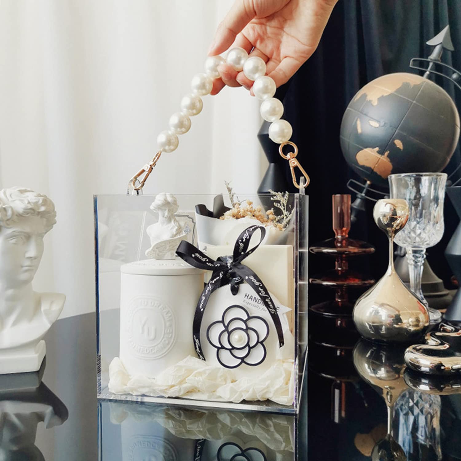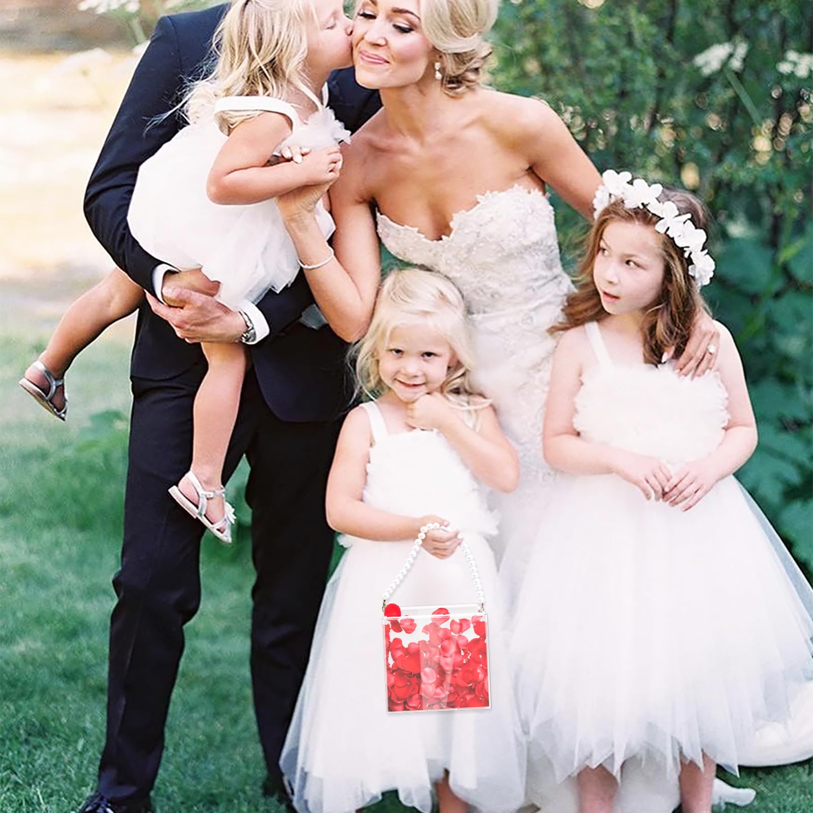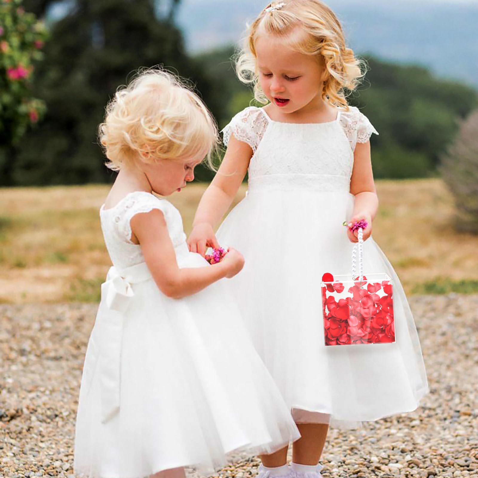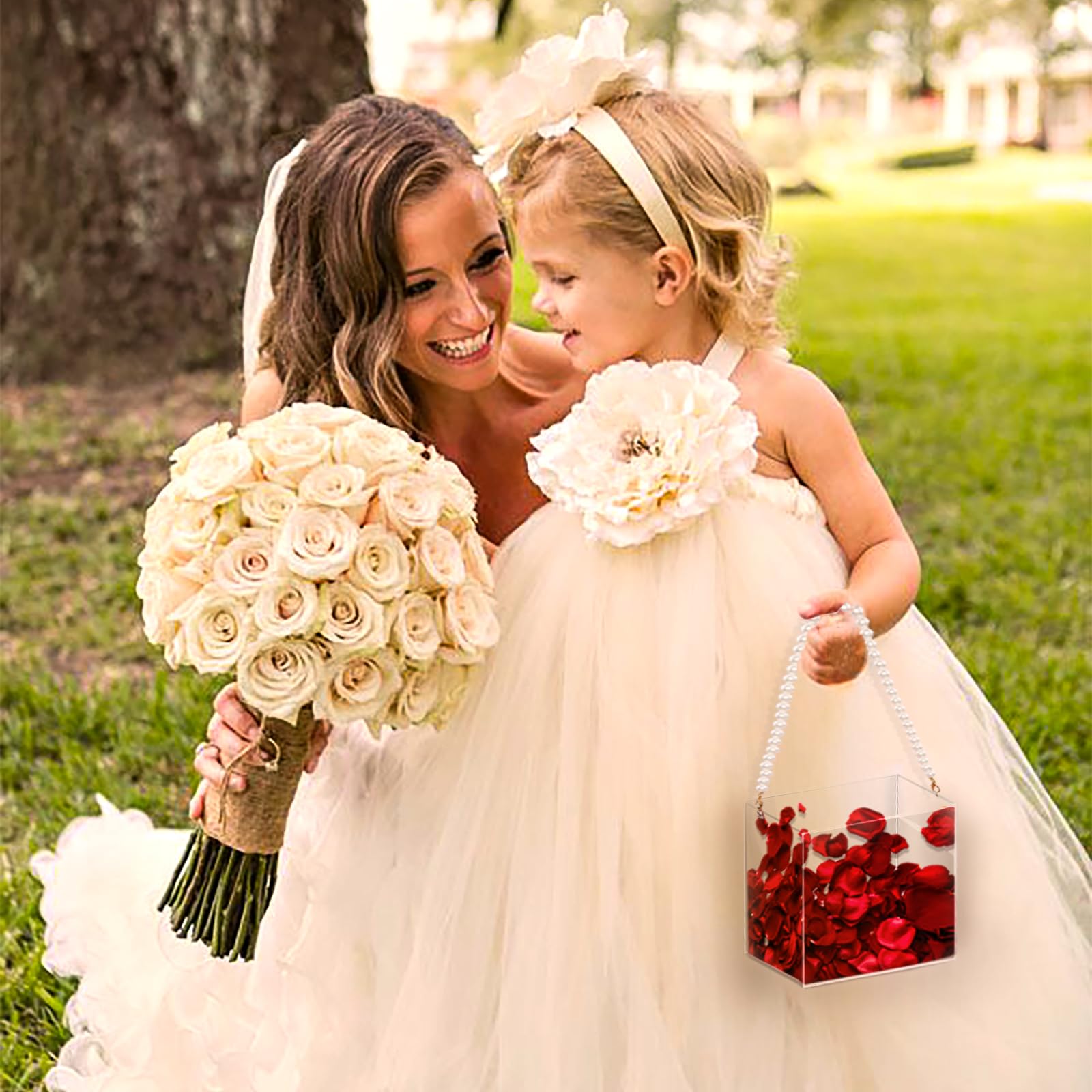 Flower Girl Basket Wedding Basket Petals basket with ribbon Acrylic Flower Holder for Confetti (Pearl)